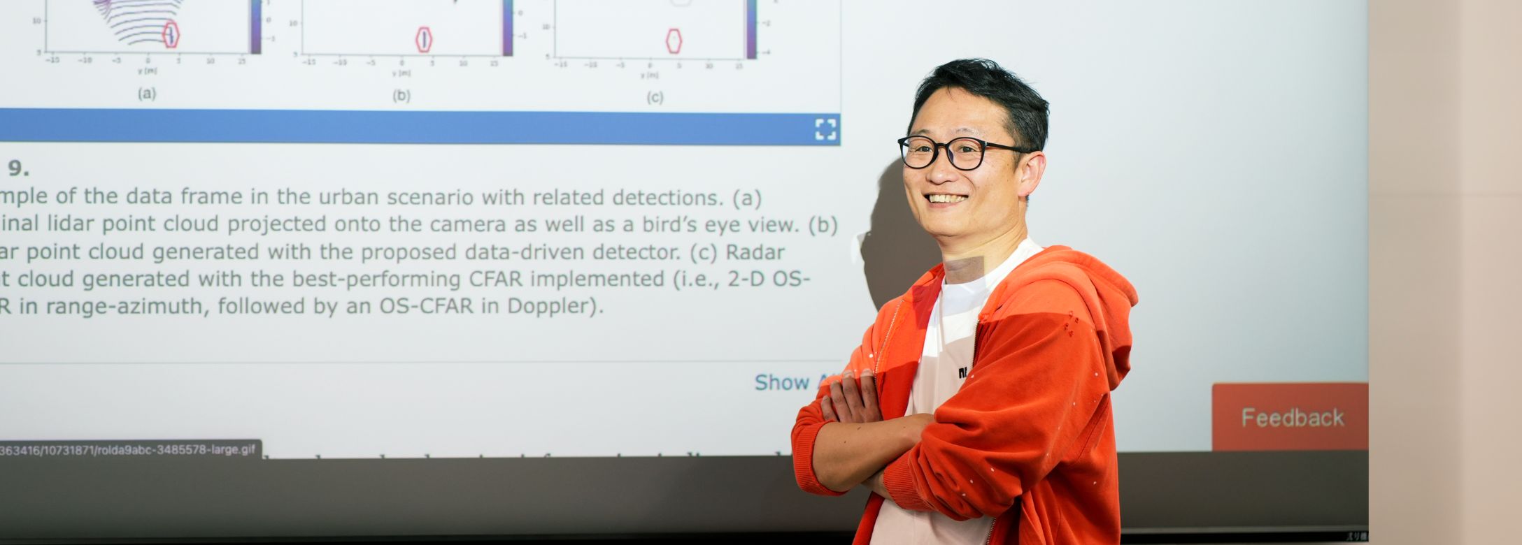 私たちが提供した研究成果は、さまざまな技術となり、多彩な車種に適用され、人に対するクルマの安全性を高めていきます。こういう形で技術の社会実装に貢献できていることに、やりがいを感じます。日頃の研究成果をフィードバックする場は、論文発表やデンソー本社での展示会などありますが、私は、依頼を持ちかけてくれた本社部署の方々へのプレゼンテーションをフィードバックの場として最も重視しています。やはり、依頼が来れば、できるかぎり応えたいですし、現場から一言、ありがとうと言われると、うれしいものです。